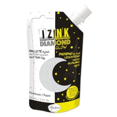 ladine Izink Diamond Glow Glitter Paint on Day, in The Dark at Night Ultra Coverage, Any Surface DIY and Creative Hobbies Soft Bottle 60 ml Silver 82092