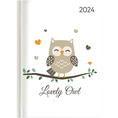 Ladytimer Lovely Owl 2024 Pocket Calendar A6 (10.7 x 15.2 cm) Weekly 192 Pages Note Book Appointment Planner Alpha Edition