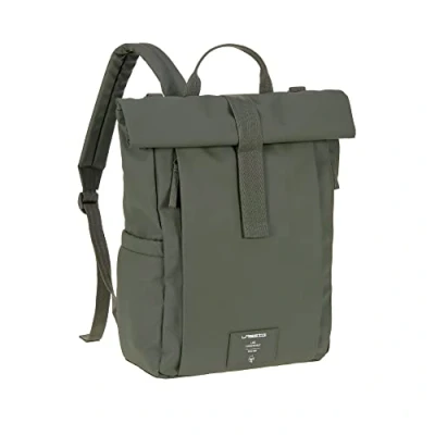 LÄSSIG Baby Changing Backpack, Bag, Backpack with Mat, Pram Attachment, Bottle Holder, Sustainably Produced/GRE Rolltop Up Olive