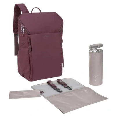 LÄSSIG Baby Changing Backpack with Mat, Pram Attachment and Bottle Holder/GRE Slender Up Deep Red