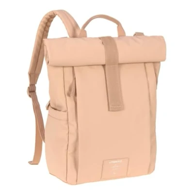 LÄSSIG Baby Changing Backpack with Mat Pram Attachment Bottle Holder Sustainably Produced Green Rolltop Up Peach Rose