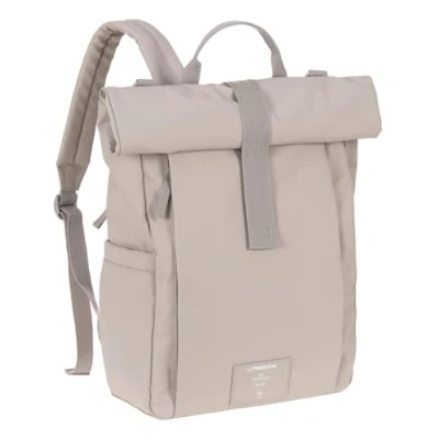 LÄSSIG Baby Changing Backpack with Mat Pram Attachment Bottle Holder Sustainably Produced Green Rolltop Up Taupe