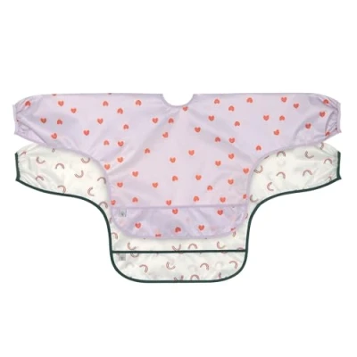 LÄSSIG Baby Long Sleeve Bib Set (2 Pieces) for Tying Catch Protection/Long Happy Rascals Heart