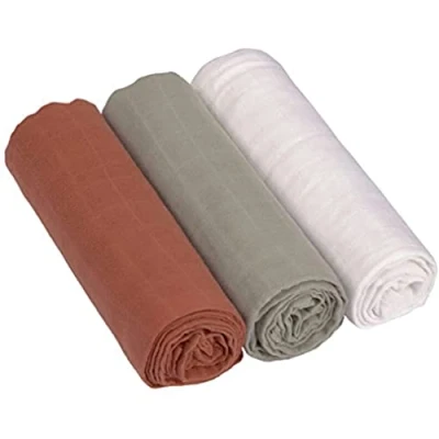 The multifunctional muslin cloth is made from 100% cotton, breathable, easy to clean and pre-washed It can be used as a burp or comforter Available in different colours in a set of 3, 85 cm x 85 cm Washable up to 60 °C Versatile, e.g. can also be used as a pram and changing mat