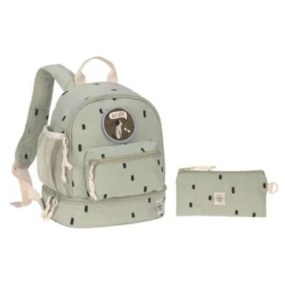 The LÄSSIG Mini backpack from the Happy Prints collection impresses with its restrained look and leaves room for creativity The practical backpack is ideal for everyday use in kindergarten or exciting trips into nature The padded shoulder straps and chest strap can be individually adjusted to the child's size The spacious main compartment of the children's backpack has space for a change of clothes, sandwich, fruit and small snacks There is space for a water bottle in the mesh pocket on the outside. Another front pocket and the practical separate pocket provide a safe place to store smaller items such as keys etc.
