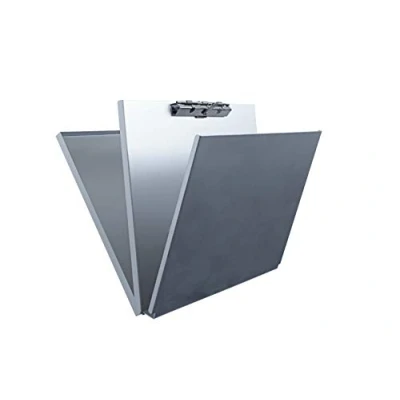Clipboard for DIN A4 landscape format made of aluminium. With compartment and intermediate layer. Opening at the top. Stable and serrated retaining clamp made of nickel-plated steel Approx. 31.5 x 24.5 cm, silver