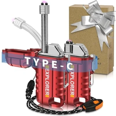 🥇What is multi-purpose lighter?▶For this question, our answer is the one which can be truely used in different occassions. You can't take a long candle lighter for outdoor adventure. Also one waterproof lighter may be useless in daily use. If you want an EDC gear, this may be your answer either. 🕯️Flexible & Stretchable Hose▶The special innovation of the lighter is built-in 360° flexible, stretchable, high-quality, heat-resisting hose. It combines different needs of outdoor adventure and home daily use. Long hose ignition keep the flame away from you which much better for canlde, stoves. The hose can also be retracted back which much more convenient in storage than other long candle lighter. 🧗♂️BIG Hanging Hole▶Upgrade hanging hole which is much more suitable for carabiner, convenient for hanging on the backpack. Also it comes with one survival lanyard and you can hang on your neck. All in all, this lighter should be your first choice for camping, hiking and fishing etc. 🔌Upgrade TYPE-C charge method▶TYPE C charge is the main trend in our life, more and more products are upgraded with TYPE C charge port. So do we. You won't bring different cables in your bag, not worried about missing the old usb cables. Also charged by TYPE C can be more stable, faster and safer, protecting the battery and extending the life of lighters. ⛺Wind & Water resistant▶ This is a true IP56 waterproof lighter that performs very well in stormy or windy weather. Any problem please contact Lafagiet after-service team, we will stand by all day long.