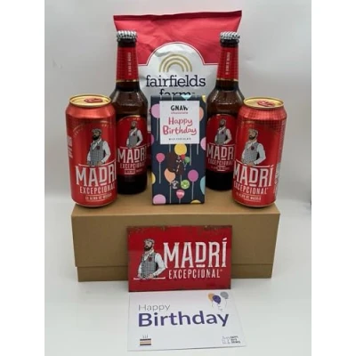 We know that there is nothing sweeter than receiving your favourite tipple on your birthday but why limit this to one day when you can have a whole week's worth of your favourite drinks and goodies? Introducing our new Lager Birthday Advent Calendar, the absolute perfect birthday gift for that lager lover, we all know and love. Make your selections from our biggest brands and each set includes four drinks (bottles or cans), bar snacks, birthday chocolate and branded gift together with a Happy Birthday postcard Each item comes individually wrapped and with an corresponding number stating the order in which the gifts need to be opened in. All gifts are then presented in a kraft hamper tray which is sure to impress any recipient. Don't forget to leave your personalised gift message at checkout to make this gift a truly unique and thoughtful gift.