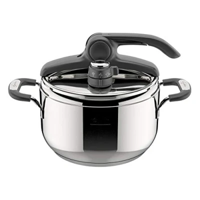 Lagoeasy'up Pressure Cooker 18/10 Stainless Steel 22 cm 5 L Patented Lagoeasy'Up opening system - easy to open with one hand and open in just one movement Equipped with 6 safety systems and a two-stage vitamin valve: position 1 for sensitive foods, position 2 for meat and fish Lagoseal Plus 3-ply high thickness base, also suitable for induction cookers Made in Italy