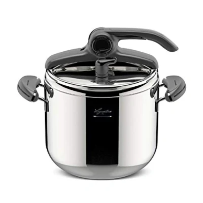 Lagoeasy'up Pressure Cooker Stainless Steel 18/10 Mia 22 cm 7 L Patented LAGOEASY'UP opening system easy to open with one hand and open in just one movement Equipped with 6 safety systems and a vertical steam release valve 3-layer base with high level Iradial Plus, also suitable for induction cookers Made in Italy