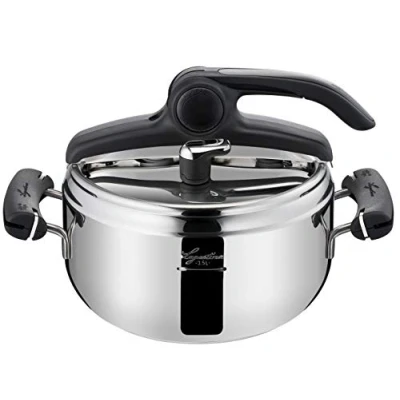 18/10 Stainless Steel Pressure Cooker 22 cm 3.5 L Patented Lagoeasy'up opening system, easy to open with one hand and in one movement. Equipped with 6 safety systems and vertical steam drain valve Triple layer bottom with high thickness lagoseal plus, also suitable for induction Made in Italy.