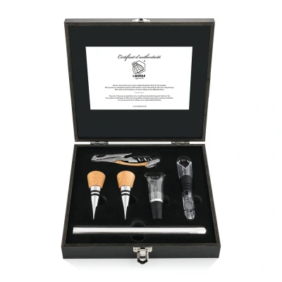 The set includes:2 Bottle Stoppers – Preserve the flavor and aroma of your favorite wines.Pouring Spout – Ensures a smooth, drip-free pour every time.Pouring Tube with Cooling Bar – Keep your wine chilled and perfectly served.Elegant Oak Wood Corkscrew – A sturdy, stylish tool that adds class to any occasion.Whether it's a gift or an addition to your own collection, this set is a timeless companion for every bottle opened.With the Laguiole Style de Vie Luxury Line, affordable luxury is paramount. The beautifully designed products are of sturdy quality and have an elegant appearance thanks to the use of stainless steel and different types of wood.