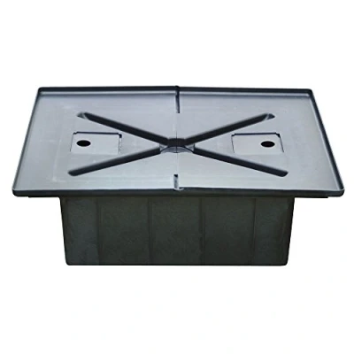 Reversible argyle raincoat Solid, heavy-duty construction supports ornamental fountains Removable lid and access points makes installation and maintenance easy Will not rust and suitable for in-ground installation Measures 15-inch length by 12-inch height by 21-inch width