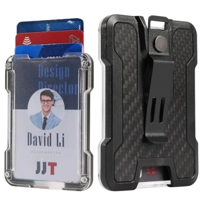 Durable Badge Holder - Lahawaha heavy duty badge holder is made of polycarbonate material that prevents scratches on cards and keeps them safe. This robust material ensures long-lasting use. Carbon Fiber Back Cover - The badge holder has a unique and cool design with a carbon fiber back cover. This feature makes the ID card holder more durable and less prone to cracking. Secure Card Holding System - The ID badge holder can hold 1 to 4 cards, which load from the top of the rigid case and firmly secured by a metal clip. This allows easy access and prevents the cards from falling out. Multi-Purpose - This large-capacity work badge holder is suitable for work IDs, school IDs, driver's licenses, credit/debit cards, and more. A stainless steel clip on the back of badge holder/wallet can keep your cash safe. Multi-Carry Design - Our mutilple badge holder can be attached to belts, clothes, pockets, or backpacks. The steel connector on the badge holder is also compatible with your lanyard, retractable reel, or carabiner.