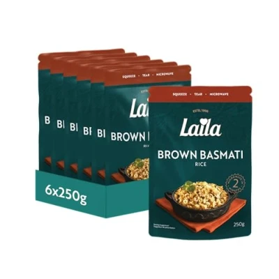 Nutritious Wholegrain Goodness - Made with wholesome brown basmati rice for a healthy, high-fibre Quick & Convenient - Ready in just 2 minutes in the microwave - perfect for busy days. Versatile Side or Main - Great with grilled meats, veggies, or as a filling for burritos and wraps Family Pack - 6 x 250g packs, ideal for stocking up or meal prepping for the week Fluffy Basmati Rice - Made with premium-quality basmati rice for a light, aromatic texture in every bite.