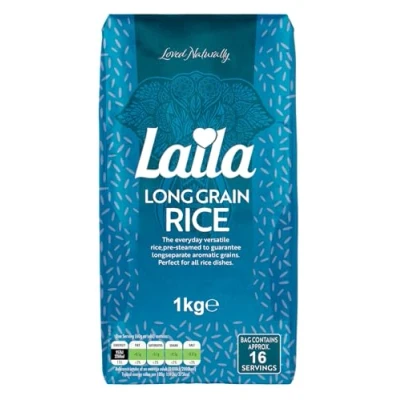 Laila Everyday Rice 1kg. Long Grain is free from Cholesterol, Super low in Fat, Sugar and excellent source of Carbohydrates.