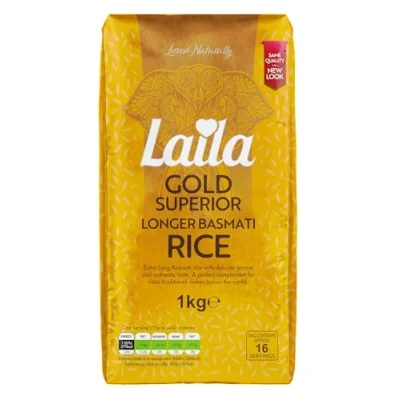 Laila Gold Basmati Rice 1Kg. has Distinct Flavours and Unique Grain Length for All Types of Cooking.