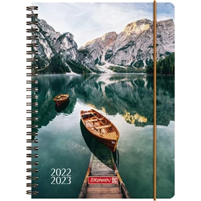 2 pages = 1 week Six languages: German, English, French, Spanish, Italian, Dutch Motif: Lake With elastic, ruler and collection bag and rounded corners with corner perforation Polypropylene cover