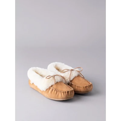 Lakeland Leather Womens Ladies' Sheepskin Moccasins in Tan Size UK 8