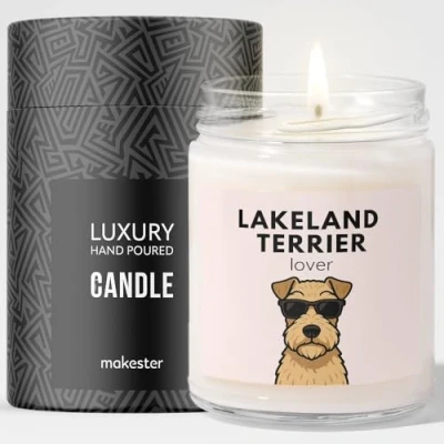 Lakeland Terrier Gifts Luxury Soy Wax Candle Vanilla, Jasmine, Sugared Almond Dogs in Shades Makester