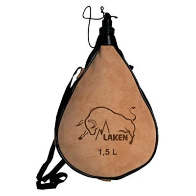 Made of leather material. With PE(Polyethylene) inner coating. Includes carrying strap, filler/drink cap and dust cap. Available in straight or curved form. Various sizes.