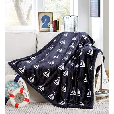 If you love burrowing under soft and cozy blankets throughout the cold weather months, this elegant blanket is for you Super soft, supple, and featuring a chic design, it's crafted from incredibly soft fabric that will instantly send a flow of warmth through your whole body. Wrap yourself up with it on chilly nights, and let yourself unwind as your muscles relax. It's also great for travel guests, car rides, sitting on benches during sports games, drive-in movie theaters, and more Reversible Sherpa Fleece Blanket crafts with greatest quality of 100% microfiber polyester fabric all layers for durable use - This comfy, cozy and ultra-plush warm Sherpa blanket provides better fade & stain resistant than cotton blankets - Unlike cotton has little elasticity to retain shape, microfiber blanket will NOT bunch with time. Care: machine washable Heavyweight and cozy Elegant and beautiful Sailboat Print design