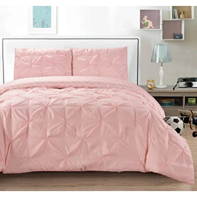 This duvet cover set is our popular pattern which we bring it to customers. It displays the classical simple delicate pattern with combined colors to give it a little more lively and literature feeling. Presenting an unparalleled visual effect on with the reversible dual sides meets various aesthetic requirements. Reversible design quickly refreshes bedroom aesthetics This set includes a duvet cover and 2 romantic matching pillow shams Care Instructions: Machine wash cold, Line dry, Do not bleach Elegant and beautiful Pin Tuck / Heart Reversible design