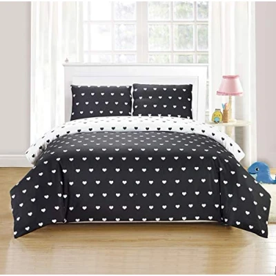 This duvet cover set is our popular pattern which we bring it to customers. It displays the classical simple delicate pattern with combined colors to give it a little more lively and literature feeling. Presenting an unparalleled visual effect on with the reversible dual sides meets various aesthetic requirements. Reversible design quickly refreshes bedroom aesthetics This set includes a duvet cover and 1 romantic matching pillow sham Care Instructions: Machine wash cold, Line dry, Do not bleach Elegant and beautiful Heart Print design