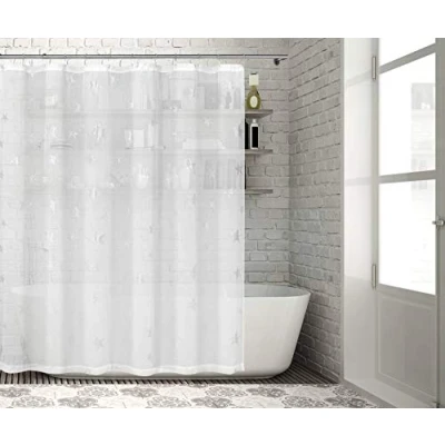 Quickly create a fresh new look with this Lala + Bash Metallic Stars fabric shower curtain Made of Polyester fabric, the high-quality curtain hangs gracefully from top to bottom, while its stylish pattern invokes a feeling of calm and coordinates effortlessly with surrounding decor. Transform any bath into an elegant spa-like oasis with the fabric shower curtain. Polyester The rich White-Silver pieced with a Metallic Stars manipulation makes you feel like you're in the spa while the 3M water repellent treatment keeps your curtain looking newer, longer Waterproof: Extremely durable fabric, it prevents water splashing outside the bath area floor. On the other hand, our smooth texture curtain will last long for using. Machine Washable & Quick Dry: After taking shower, the shower curtain could be washed by washing machine for measurement, it is made by quick