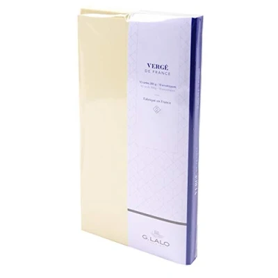 Lalo 25016L Verge De France Correspondence bag with 10 single cards DL 10.3x21.3 cm 300g and lined envelopes 11x22 cm, laid paper from France, Ivory