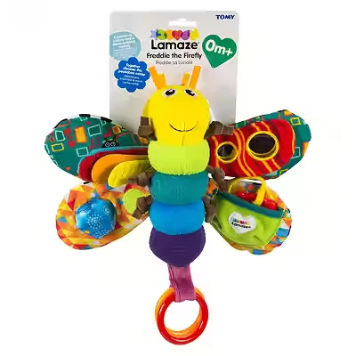 Why Buy Me? Meet Freddie the Firefly, a delightful plush toy designed for babies from birth and developed with child development experts from Yale University. Featuring high-contrast patterns to stimulate vision, engaging sounds for auditory development, and multiple textures for tactile exploration, Freddie is perfect for playtime. The toy includes a chain link for attachment to Lamaze toys or play mats, a link clip for car seats and strollers, and a tethered ladybug teether. Safe and cuddly, Freddie encourages healthy eye development and fine motor skills while providing endless fun for your little one. Brand : Lamaze Product Type: Activity Toys Product Sub-type : Cot Toys Functionality: This friendly bug features a soft velour body and busy wings with a peek-a-boo mirror, textures, squeakers, and crinkles. Also includes clinking rings, tethered ladybug teether and knotted antennae for chewing. Material : Velour, soft fabric Product Dimension: 26 x 6.70 x 25.40 cm; 10.24"L x 2.64"W x 10"H