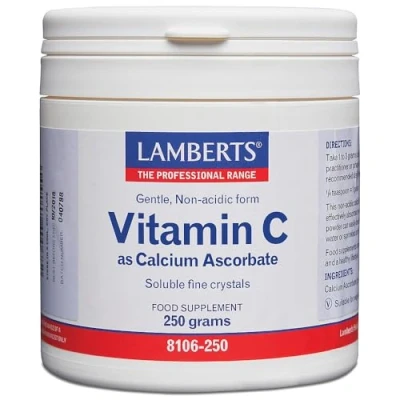 Lamberts Vitamin C Powder Gentle Non Acidic Calcium Ascorbate 250g Fine Crystals High Strength & Easily Soluble