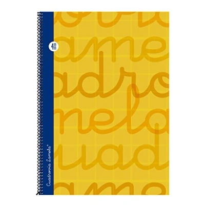 Dimensions: 215 x 315 mm. Format: Folio Cardboard cover lined with colour printed and plasticized paper. Binding: Spiral loop turned black lacquer. Paper: Extra white offset 70 g/m2 with margin. Striped: 4 mm Lamela quadroway. Number of sheets: 80