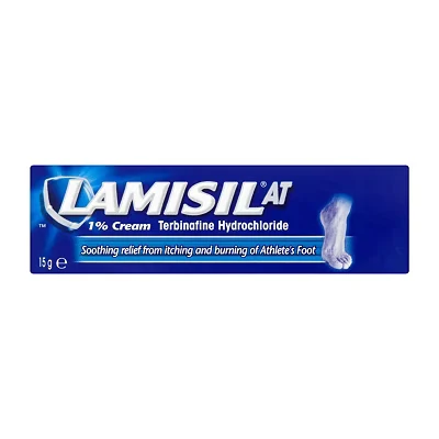 Treats fungal infections of athlete's foot and jock itch; for effective relief of the itching and burning, cracking and scaling which accompanies these conditions Lamisil AT 1% cream should start to improve your skin condition in a few days, although full skin healing after the infection has cleared will take longer, up to four weeks, because of damage caused during infection Lamisil AT 1% cream will continue to work even after you have stopped using it at the end of the treatment period Treatment can be helped by keeping the affected areas clean by regular washing and careful drying without rubbing Because these infections can be passed on to other people, it is helpful to keep your own towel and clothes, which are not shared by others; to protect yourself from re-infection, these should be washed frequently