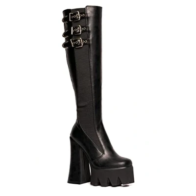 Lamoda Guess So BlackPU Chunky Platform Knee High Boots for Women Elevated Design, Trendy Streetwear Style, Comfortable Fit, Durable Material, Modern Fashion Footwear, UK5