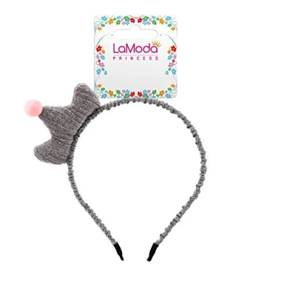 Pink and grey hairband with padded crown and pomp pomp detail Perfect for dressing up, children's parties, occasional or day to day hairband wear 11cm hairband with 7mm width band. Crown measures 5cm x 7xm Colour received will either be pastel pink with grey pomp pomp or grey with pastel pink pomp pomp Manufactured to exacting standards, LaModa Princess is a Murrays Health and Beauty brand