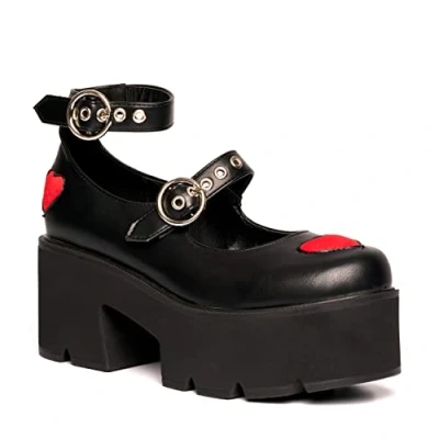 Lamoda Rosey Love Black Red Chunky Mary Jane Shoes for Women, Durable PU Upper, Adjustable Strap, Padded Interior All Day Comfort, Bold Fashion Design, Perfect Casual Outings UK3