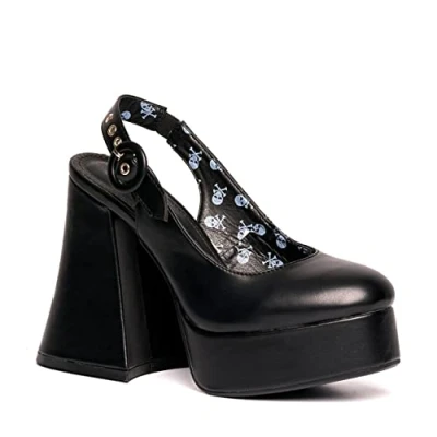 Bold Fashion Statement: Step out in confidence with these Lamoda black platform heels, designed with a chunky heel and elevated sole for an edgy, on-trend style that turns heads. Comfortable Fit: Crafted with cushioned insoles and supportive structure, these heels offer comfort without sacrificing style, making them ideal for long nights or special occasions. Durable Design: Made from high-quality BlackPU material, these shoes ensure lasting wear while keeping their sleek finish, so you can enjoy both durability and fashion in one. Versatile Style: Perfect for nights out, parties, or concerts, these black platform heels easily pair with dresses, jeans, or edgy outfits for a bold yet feminine look. Perfect Size Fit: Designed in UK4, these Lamoda platform heels offer a secure and flattering fit, making them a must-have addition to any fashion-forward woman’s shoe collection.