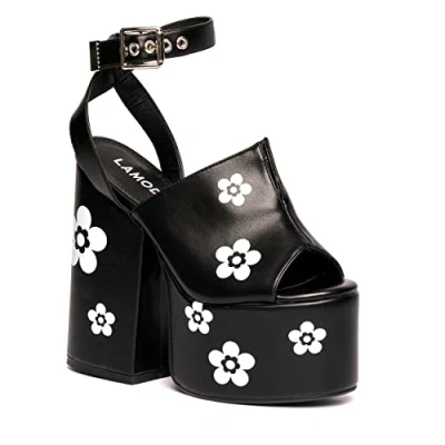 Bold Floral Platform Design: Step into standout style with Lamoda’s Dancing Queen sandals, featuring chunky black PU and delicate white flowers perfect for Y2K, alternative, and statement fashion lovers. Comfort & Confidence Combined: With a cushioned footbed and wide block heel, these sandals offer comfort for all-day wear while delivering maximum height and dramatic flair to your outfit. Secure Fit with Adjustable Strap: The ankle strap with buckle closure ensures a snug and supportive fit, keeping you steady and stylish at parties, festivals, or casual streetwear looks. Durable BlackPU Material: Crafted from high-quality synthetic BlackPU, these sandals are lightweight, long-lasting, and easy to clean ideal for both everyday wear and special occasions. Versatile for Every Statement Look: Pair with skirts, denim, or dresses these platform heels add a bold, feminine touch to any outfit, from retro-inspired to modern edgy fashion.