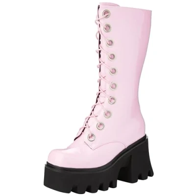 LAMODA Women's Get Paid Chunky Platform Calf Boots in UK6