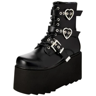 Step into standout style with the Lamoda Part Time Lover Black Chunky Platform Ankle Boots, designed with a bold silhouette and statement sole that delivers instant edge to your streetwear or casual outfits while ensuring confident all day wear. The chunky platform sole provides extra height and a striking look while remaining durable and supportive, making these boots a perfect choice for nights out, concerts, or simply elevating your daily fashion with a bold footwear statement. Crafted from a high quality synthetic leather finish, these Lamoda platform ankle boots offer long lasting durability and easy care while maintaining a sleek appearance that pairs effortlessly with a wide range of alternative and everyday outfits. The lace up front and ankle height design add an extra touch of detail to these boots, creating a versatile look that works well with skirts, dresses, jeans, or leggings, giving you countless styling options for both casual and bold fashion moments. Perfect for those who love dramatic footwear, the Lamoda Part Time Lover platform boots combine function and fashion with their sturdy sole, stylish construction, and striking design that makes them a reliable choice for anyone seeking confident streetwear shoes.