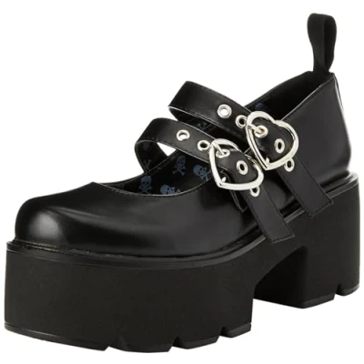 LAMODA Women's Ring Me Chunky Platform Mary Janes in UK3 Black Pu