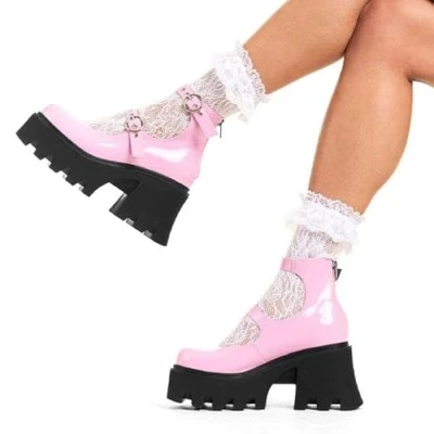 LAMODA Women's Slow Jamz Chunky Platform Ankle Boots in UK5