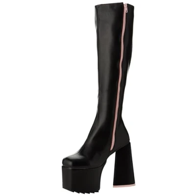 Step out in style with Lamoda Wide Eyed Black Pink Chunky Platform Knee High Boots, featuring a striking black and pink stretch PU upper and chunky platform sole that adds height and bold flair, perfect for streetwear, casual, or party styling. The chunky platform sole provides stability and all-day comfort, making these knee high boots ideal for city outings, social events, or anytime a bold fashion statement is desired. Durable stretch PU construction with reinforced stitching ensures long-lasting wear while maintaining a modern silhouette, combining practicality with standout fashion in one platform knee high boot. The lace up knee high fit allows a secure and adjustable hold, paired with a cushioned insole that delivers lasting comfort, balancing functional support with contemporary style for versatile everyday wear. These Lamoda Wide Eyed Black Pink Chunky Platform Knee High Boots elevate any outfit, pairing perfectly with skirts, dresses, or layered looks, creating statement ensembles that enhance streetwear fashion while ensuring all-day comfort and confident style.