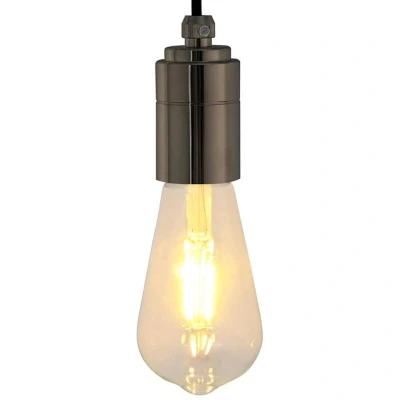 ManoManoGeneral description These lamp holders would be a great addition to any stylish room with an exposed vintage bulb, adding atmosphere and lighting to your space. The pendant socket features a charming vintage design that beautifully enhances your decor with its antique industrial aesthetic. Paired with bulbs, it creates a nostalgic atmosphere—perfect for restoring old lamps or crafting unique lighting fixtures. Technical specifications Colour: Glossy black Material: Aluminium Overall dimensions: 41 x 80 mm (Diameter x H) Wire hole diameter: 7 mm Voltage: 250 V~ Frequency: 50 Hz Max. power: 60 W Socket type: E27 Delivery contains: 2 x Lamp holder Installation Specially designed for an E27 bulb, the lamp base offers a simple setup—just connect the wires correctly to the positive/negative pole and screw the bulb in. The strain relief is designed to protect the electrical wiring from mechanical stress or tension. Usage The bulb holder is perfect for a wide range of settings, from kitchens