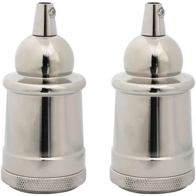 ManoManoGeneral description These lamp holders would be a great addition to any stylish room with an exposed vintage bulb, adding atmosphere and lighting to your space. The pendant socket boasts a charming vintage design that beautifully enhances your area with its antique industrial aesthetic. Paired with bulbs, it creates a nostalgic atmosphere—perfect for restoring old lamps or crafting unique lighting fixtures. Technical specifications Colour: Satin nickel Material: Aluminium Overall dimensions: 49 x 103 mm (Diameter x H) Wire hole diameter: 7 mm Voltage: 250 V~ Frequency: 50 Hz Max. power: 60 W Socket type: E27 Delivery contains: 2 x Lamp holder Installation Specially designed for an E27 bulb, the lamp base offers a simple setup—just connect the wires correctly to the positive/negative pole and screw the bulb in. The strain relief is designed to protect the electrical wiring from mechanical stress or tension. Usage The bulb holder is perfect for a wide range of settings, from kitchens