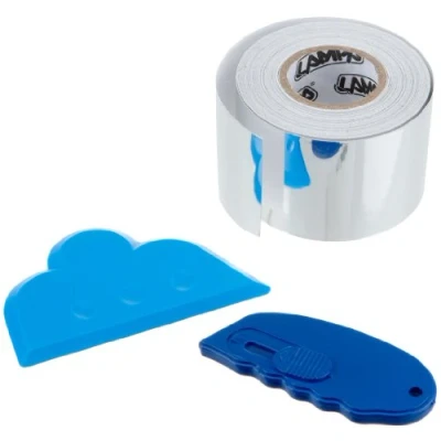 Self-adhesive decorative strip. In chrome look. Dimensions:10 m x 40 mm. Just cut to your liking. Including cutter and spatula.