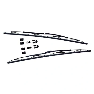 Wiper blades with anodised metal frame and brackets. Long lasting rubber with graphite lamination. Universal fitting kit suitable for all cars