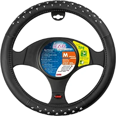 Lampa 32973 Icon Steering Wheel Cover, Black/Silver, 37 39 cm