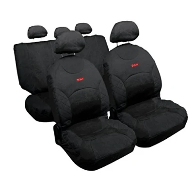 2 front seat covers, 2 rear seat covers, 5 headrest covers, in jeans fabric with sponge padding Universal compatible for most standard seats; Seats Fitted with side airbags Non-fading colours; Soft padding; Headrest Cover Included Front Seats with Velcro opening Backrest and seat rear 50/50 divisible, 60/40, 40/60 (3 + 3 Hinges); Removable for greater adaptability to the central part seats close